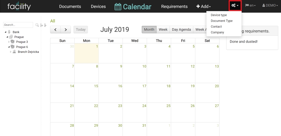 Prima puoi iniziare il processo di aggiungere un dispositivo specifico, avrai bisogno di aggiungerlo al tipo di dispositivo. Una volta che il differente tipo di dispositivo e stato aggiunto, sara prima aggiunto al nuovo dispositivo in futuro. Sotto e la home della pagina del calendario sul tuo online facility management, dove troverai facile accesso la navigazione si aggiunge al nuovo tipo dispositivo.